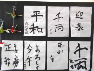 書初の展覧会をしております。お正月をテーマに皆様書いて下さいました。招待状はありませんのでフラッとよって作品をご覧になってくださいませ。