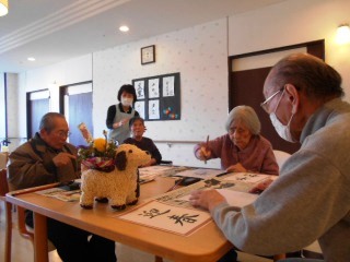 お正月といえば定番のこちらです。書初め お題は「お正月」たくさんの方が思うがままに書いてくださいました。お正月の展覧会として後日ご報告いたしますね。