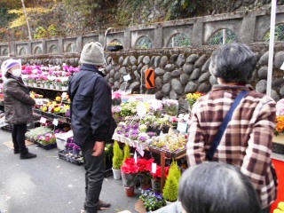 11月19日午後えびす講に出かけました(*^。^*)7名様とスタッフ4名。桐生出身の方ばかり。懐かしまれました。前の日から全国的にも冷え込み桐生も例外ではなくとても寒くなりえびす講らしい天候になりました。(ここ最近は暖かいえびす講でした)とても狭い道路の両側に出店が並ぶものですから狭い狭い・・なのでお宝が売っているところで一休み。いい匂いがする中お昼は食べて来たものの購買意欲はそそられ、たこ焼き、からあげ、カステラ、焼きまんじゅうなどお買い上げ^_^;私たちも楽しませていただきました。