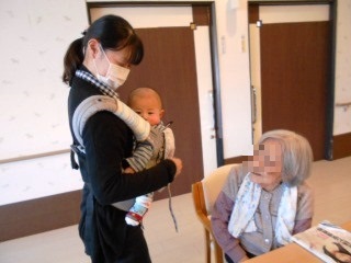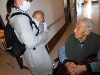 Ⅲ番館事務員さんが今育休でお休みしているのですが、本日ベビーちゃんと遊びに来てくれました。入居者様は自然に笑顔に~ベビーちゃんのパワーはすごいと実感したひと時でした(*^_^*)