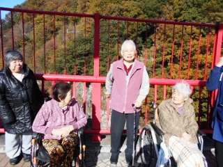紅葉を見に行きたい‼という希望が強くあり出かけました。みどり市高津戸橋。駐車場には川口ナンバーなど県外の大型バスが数台。カメラマンがたくさんおり私もカメラを構えベストポジションを探し探し・・まだ全盛期ではないようで、来月になったら再度訪れたいと思います。施設から車で10分程のところでした(*^。^*)