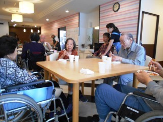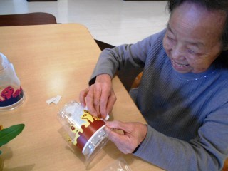 こんにちは、桐生はⅢ番館からです。明日台風上陸とニュースで繰り返し伝えています。皆様もお気を付けください。そんなわけで今日は雨です。2階では「千と千尋の神隠し」を上映。3階では秋の夜長イベントの準備に入居者様がお手伝いしてくださっています。はさみを使って、切り取りプラコップに貼る 貼る 貼る 「なんかくれるの?」と聞かれてしまいました。秋の夜長コンサートまであと9日‼楽しみです(^_-)