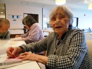10月14日土曜日。雨は落ちてきませんでしたが、11月の気温だとかで入居者様と顏を合すと「寒いね~」なんで挨拶が飛び交いました。でもスタッフは半袖・・・笑。さて表題にあります本日のレクのお知らせです。今日は大人の塗り絵高レベル‼なものと予防体操の2本立てです。塗り絵は5名様参加され、集中されていました。見本が必需品です。予防体操は5曲。「北国の春」「リンゴの歌」「めだかの学校」などなど。歌いながら~♪体操~♪体があったまったでしょう~♪武藤先生(女性スタッフ)がしっかりとリードして下さいました。お疲れ様でした(*^。^*)