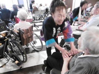 本日8月の最終日に川内2丁目婦人部のみなさんが慰問に来て下さいました‼初来館祝です。入居者様30名は地元が桐生ではない方も多く八木節についてはふ~んといった感じの方もおりましたが、手拍子で盛り上げてくださる方も(*^。^*)その他、マジック・安木節など披露。最後の最後は8月生まれの方のお名前を一人一人呼んでくださりみんなで「おめでよう~」帰り際に一人一人握手をしている姿には見習いたくもありました。おぐら会の皆様へ楽しい時間を過ごす事ができましたヽ(^。^)ノ八木節大好き‼この場を借りて御礼とさせていただきます‼是非またご来館くださいませ
