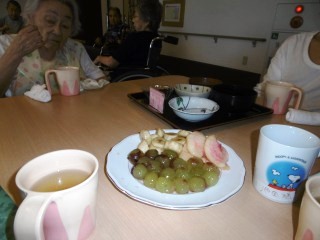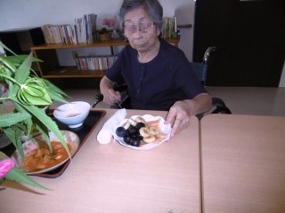 入居者様のご家族よりな時フロアの入居者様にフルーツの贈り物が届きました。早速皆様に召し上がっていただきました♪美味しかったようで何よりです。贈り物ありがとうございました‼桃・バナナ・巨峰でした。