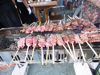 今年も相生町会長のご招待を受け参加させていただきました~‼町会長さんに4時半頃来てたほうがいいよといわれメンバー全員女子?による女子会?スタート‼予約席もあり私たちスタッフも座ることができ感謝♪感謝です。とにかくメインの牛串をたくさん購入。相生にどんさん亭というステーキ専門店と居酒屋さんのメニューにあるものですが店と比べると半値で購入できるので、さすが人気がありすぐ行列が出来てしまいます。しかもみなさん同様にまとめ買い。そして女子会メンバーさん等も「肉が美味しい~」と気付けば3本、4本止らない。ふと預かったお金をみる私「大丈夫かな・・」 他、ビールなどもありますが一人も飲むことなく焼きそば、フランク、うどんと頂きました。そして桐生西高校・和太鼓部の演奏が(*^。^*)なんとその日は2回目のステージ 部長の声が少しかすれていました。「5月の良きよりすっごくよくなっているね」と入者様も彼らの進化にきづきます。圧巻のステージは30分。これからも応援しております。がんばれ西高校‼本題からそれてしまいましたが兎にも角にも今年も楽しく参加させていただきました。