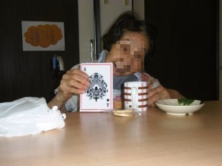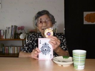 先日の出来事・・外は異常に暑い‼さて何をしましょうか?と伺うと「トランプ‼」のリクエスト。みんな大好き「ザ・ババぬき」です。賭け事は法律で禁じられています。ここではゲームに参加すると素敵なお菓子がもらえます。安心して参加出来るシステムです。冗談ですが、勝負ごとになると熱が入りやすいので盛り上がりますよね。3ゲーム実施した午後のひと時でした。