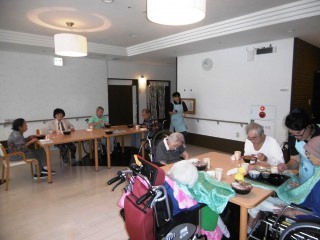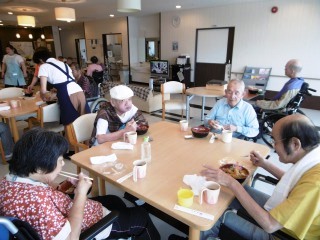 7月7日(金)のお昼。食事レクとしまして出前が届きました~全部で42食‼みんな大好きお刺身三昧です。桐生の美喜仁さんがおみやげ専門店を開店。そちらでお願いいたしました。お刺身午前が一番人気、次に天丼とボリュームたっぷり。おやつはもういらないといった状況になっていました^_^;