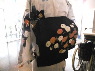 久しぶりに着物シリーズ復活です。と言っても夏らしく浴衣です~ 涼しげな印象でエントランスでお客様をお出迎え致します。帯は浴衣のものではなく名古屋帯です。とても気に入っているもので日の目をみることが素直にうれしいです。当面チャレンジしていく予定ですお楽しみに♪