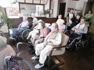 午後の1時からは桐生西高校和太鼓部の演奏です。アンコール含め1時間の演奏は圧巻でした。何度か拝聴しているのですがレベルアップというか更にパワフルになっていて 普段1時間聞いていることなんで難しい入居者様達が微動だにせず聞き入っているのをみてホント感謝です。また9月には第2回定期演奏会を予定強いるとの事。これからの活躍益々応援しております。イベント参加本当にありがとうございました‼