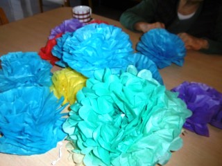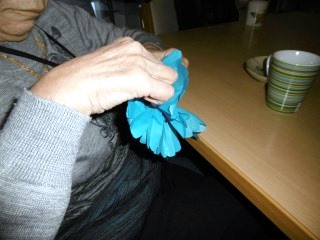 2月19日日曜日午後2階は映画館、3階ではペーパーフラワーの作業をしました。小さい頃作った思い出ありますよね。説明なくても作業がすすみます。さすがです、先輩方。春の飾りに使うものですが、まだまだ不足しております。一緒にがんばりましょうというと「やりたくない~」と正直な声が。なんだかんだと一緒に作ってくれるのは知っていますのでどうぞよろしくお願い致します。