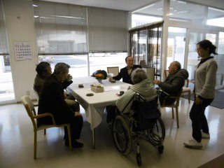 普段車イスのかたもソファーに座り、お茶を飲みながら、お話しをされたり、読書をされたりと好きなことをされ過ごされていました。皆さんお話しにも花がさき、暖かくて気持ちいいと笑顔も多く楽しまれていました(*^。^*)