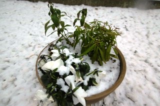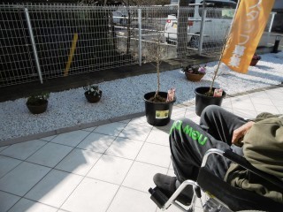 こんにちは、今日すっごく寒いです。今年初めての雪が降りました。9時頃日が差したのであったかくなるかと思いきやお昼近くに雪が再び舞い降りるなど不安定な天気でとにかく寒い‼です。そんな中先日購入した桜の木を大きいポットに植え替えることに。桜は2種類、『御殿場桜』と『松月桜』長く楽しめるようにと時期がずれるものを選びました。私個人の好みですが八重で明るめの色にしてみました。ご家族様からも「いいね~。桜でいっぱいにして有名な施設にしようよ笑」と。春が待ち遠しくなる季節の出来事でした。