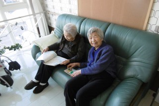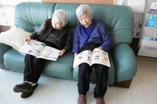 昨日は、暖かくいい日だったので談話コーナーにて、日向ぼっこと読書をしました。