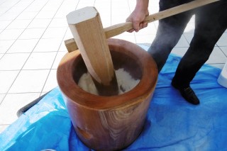 本日午後より餅つきのイベントを行いました。前日の雨と打って変わりいい天気‼欲を言えば風がなければもっとよかったですが。近隣にお知らせし、ボランティアさんも来て下さり本当に助かりました。餅をつくたび「よいしょ‼」の掛け声感謝です。昔は朝の3時から起きて準備してやってたんだよ。とニコニコして話される方もおり懐かしい「ぺったんこ』を聞いていました。臼と杵は市内のたちばな保育園様より貸与していただきました。感謝感謝 しかし臼は重い‼台車が悲鳴を上げてしまうほどです・・体力がある限り続けたい季節の行事でありました。アッお餅の写真がないのですがお汁粉と、きなこ、胡麻、一番人気の辛みもちでした。その次お汁粉でした。ではまた(*^。^*)