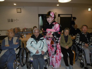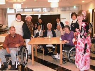 人生の節目である成人式が行われ施設のスタッフ2名が式典後、遊びにきてくれました。入居者様に「約束通りきましたよ」と声をかけ皆様と写真を撮らせていただきました。感極まり涙する人をみて私も涙ながらにシャッターを切る始末。そして二人それぞれにメッセージを送りました。ここには先輩がたくさんいるからね。人生笑いあり、涙あり。でも自分たちで切り開いていくんだぞ。しっかり立って。 女性入居者様は「帯をみせて」「どうなっているの?」さすがでした。でも二人は早朝から来ている着物を早く脱ぎたーいの心境。お疲れ様でした。
