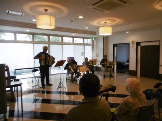 演奏する曲も、昔の曲が多く皆様とても喜んでおり、終了後には「次はいつ来てくれるんだい!!」といっておられる入居者様もいました。