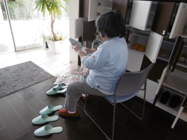 お客様を気持ちよくお迎えするため、玄関をお掃除♪入居者様が積極的に手伝ってくださりスリッパすっごくきれいになりつつあります。まだまだきれいにしていきますよ(*^。^*) ゴールデンウィークでご家族様の来館も多く施設はにぎやかです。そんな中、自宅に咲いていたお花を頂きました。アイリス?スズラン、紫蘭など。花の色がたくさんのこの季節、いいですね。