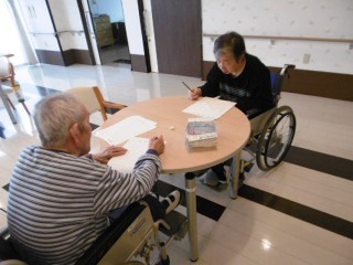 以前、漢字問題を行ったところ、入居者様から「漢字はもうやりたくない」とのお言葉があり、本日は計算問題になりました。
