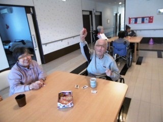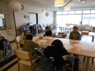 「脳のトレーニング」としまして漢字の勉強をいたしました。真剣な表情で取り組まれている姿は「いつもと違う」一面を見せていただきました。答え合わせでは、「あぁ~やっちゃった」や「出来て当然」のような声が聞こえ笑を誘う場面も。日々のレクリエーション風景からでした。