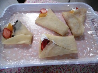 本日、入居者様に盛り付けに参加していただき、手作りおやつのクレープを作りました。