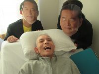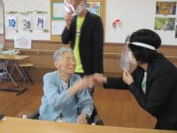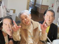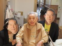 岩手の生んだ有名人は数々いますが、今回はこの方、「しらかば~~あおぞおら」でおなじみの千昌夫さんスタッフが千昌夫さんのお面をつけて各居室を回り、食堂でクイズやカラオケをしました。居室にお邪魔すると千昌夫とは分からずびっくり、でも千昌夫の顔と分かると「大好きだったのよ」と満面の笑みに代わりポーズまで