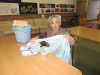 毎日、顔拭きに使ったタオルや食事の時に使用するエプロンなど洗って干すところまでは職員がするのですが、乾いていると濡れていなければ使えると思うとついついたたむことは後回し、そんな様子に見かねて入居者の方が、「これは私の仕事ね」と、毎回お手伝いをしてくださっています。