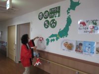 まずはご入居者様と作ったきんぎょ提灯の飾りつけから、