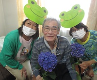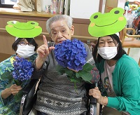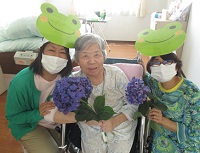 カエルと紫陽花が、季節感を演出していて、入居者様もとても喜んでいらっしゃいました♬