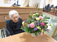 施設に届いたフラワーアレンジメント❀