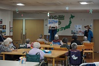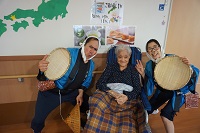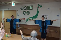 いつも顔なじみのスタッフが演者として「安来節」を披露してくれましたが、入居者様は傍に来ても誰だかわからなかったようで、名前を言ってそこで「えっ~!」と驚いていらっしゃいました!