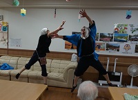 演者の二人は汗だくになりながら、入居者様を楽しませるために、全身を使って演じていました!