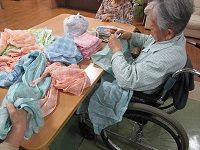 施設のお洗濯物たたみを入居者様にご協力を頂いております!