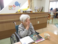 お洗濯物をたたんで頂いていて、毎日時間になるとフロアへ来られて、お仕事に励んでいらっしゃいます!