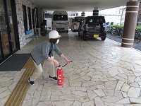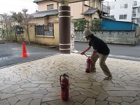 施設で万が一火災が発生した場合は、初動が大切ということで、初期消火時に必須である消火器の操作方法を再度確認しました!