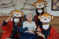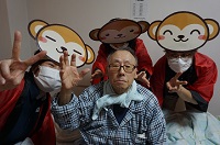3匹のお猿さんに付きまとわれて苦笑いのようですが、喜んでいただけて嬉しいです♬