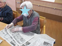今回は、新聞紙を1枚ずつにわけて折り畳む作業です!