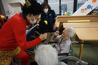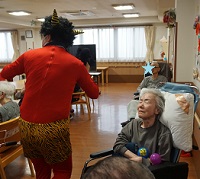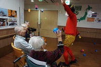鬼役のスタッフK鍋さんは、「当ててくれ~、もっと僕にボールを当ててくれ~!」とアクションを起こしてくれていましたが、心の優しい入居者様ばかりなので、ボールを投げるというよりかは、そっと鬼にボールを差し出す方が多かったです♬