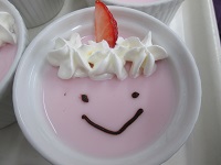 イチゴのプリンでほんのりピンクの顔♡