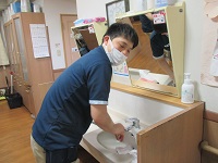 他の介護施設からメディス北越谷に転職してから3ヶ月が過ぎました。早番、日勤、遅番、夜勤業務を覚え、1階の認知症フロアの方のケアを行っています。覚えることがいっぱいだと思いますが、しっかり者の性格なので、記録や業務はテキパキとこなし、入居者様と接するときはきちんと傾聴し、お話を聞いて対応してくれています!