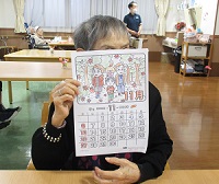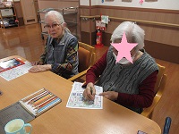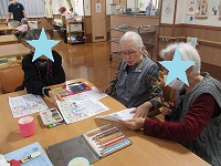 3階の入居者様が11月のカレンダーの塗り絵をしていらっしゃるのを見て、