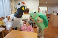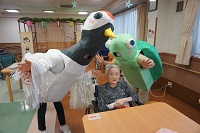 鶴と亀がご長寿をお祝いしに登場し、「鶴亀っクス」というエアロビックスと掛けた歌でダンスを披露してくれました♬