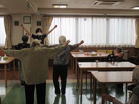 入居者様も毎日ラジオ体操を行っておりますので、体の変化に気付きやすいと思います。職員も変化に気付きやすいと思います。
