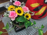 ピンクの薔薇も存在感があり、夏を感じるフラワーアレンジメントを届けてくれたお花屋さんに感謝致します!