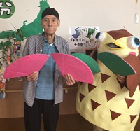 各県の有名なものやキャラクターなど職員手作りで着ぐるみを作り、被り、踊り楽しんで頂いております!