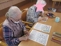 毎月のカレンダーの塗り絵を楽しんでいらっしゃるお二人です♬