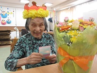 明日お誕生日をお迎えになられるM様ですが、当日お仕事で施設に来られないという息子様から、早めにお花の贈り物を届けて頂きました♬