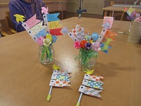 小さなこいのぼりを作り、テーブルに可愛らしく飾っていらっしゃいました♬