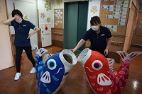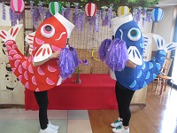 こいのぼり2体が音楽に合わせて踊りながらフロア内を回っていました~♬