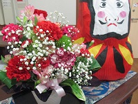 可愛らしいお花が届き、隣のメディスだるまさんは頬っぺたを赤くするほど照れています♡